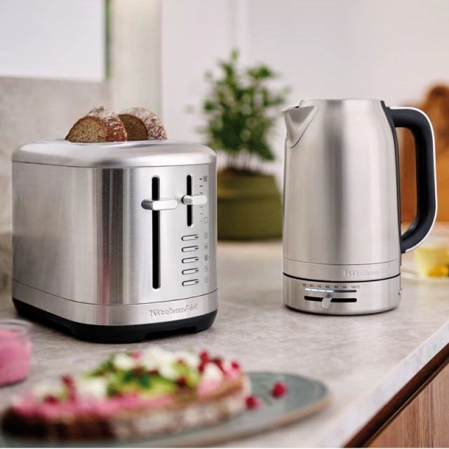 Ваша кухня - це серце дому, і хороший тостер стене ідеальним доповненням. На щастя, надійний тостер KitchenAid виготовлений зі зносостійкого металу, який без проблем витримує щоденне використання. Навіть ручка регулювання температури хромована.