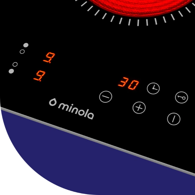 Готувати з поверхнею Minola — абсолютно безпечно. Модель обладнана функцією захисту від переливу, яка автоматично вимикає пристрій у разі потрапляння рідини на панель управління, та функцією захисту від дітей, яка заблокує панель керування, щоб ваші маленькі помічники не змогли змінити налаштування.