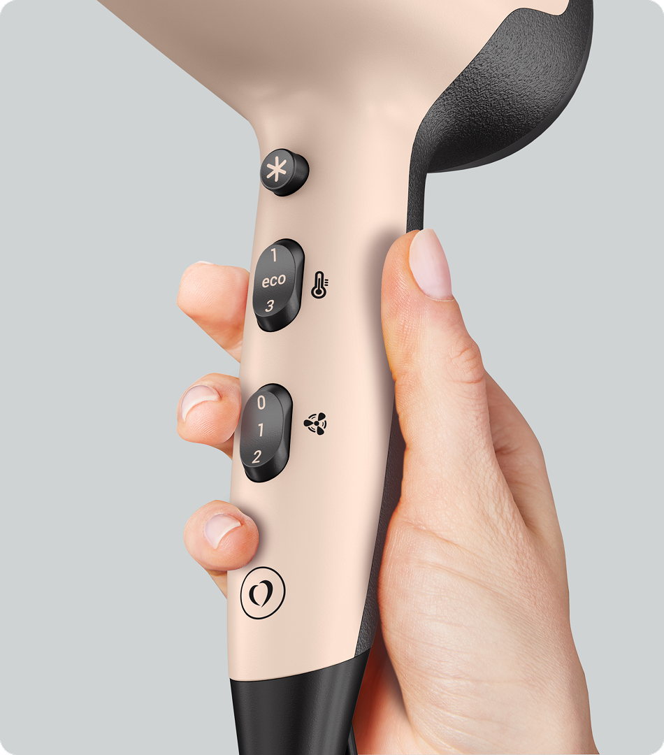 Розумний режим ECO змінює вашу б’юті-рутину: вбудований сенсор автоматично вмикає та вимикає фен, щойно ви берете його в руку або відкладаєте. За потреби цю функцію легко вимкнути та перейти до повного ручного керування. LED-підсвічування інформує про ввімкнення або вимкнення режиму ECO
