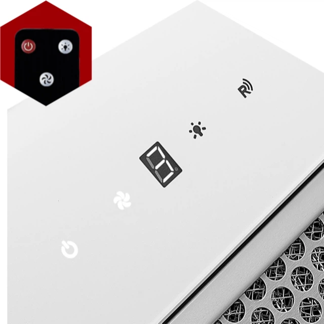 Також до комплектації входить пульт ДУ. Приблизна відстань реагування витяжки на пульт — 3 метри. Цього достатньо, щоб вмикати та вимикати витяжку, перемикати швидкості, активувати таймер та освітлення у межах кухні.