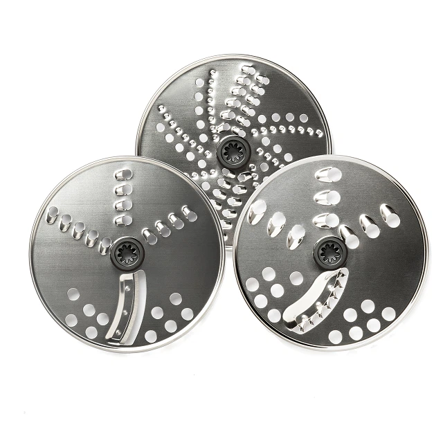 Оснащений трьома дисками, що дозволяють легко змінювати тип нарізки для різних продуктів. Це дає змогу досягти бажаного результату для кожної страви, будь то дрібна терка, велика нарізка чи подрібнення.