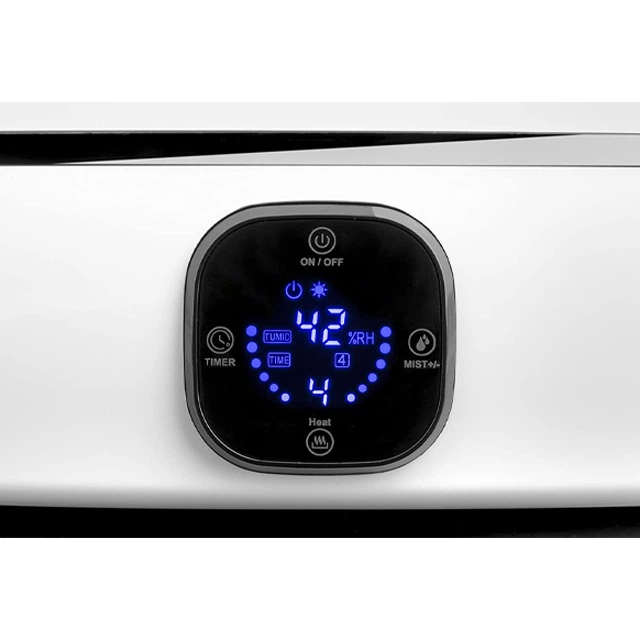 Olimpia Splendid оснащений сенсорною панеллю керування останнього покоління, що дозволяє без проблем його налаштовувати, залежно від умов у кімнаті. Вбудований таймер знадобиться для того, щоб запрограмувати автоматичне вимкнення через кілька годин. А звукові сигнали сповістять про нестачу води в резервуарі.