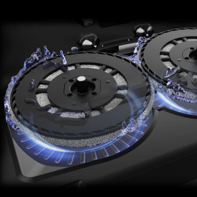Датчики килимів допомагають роботу адаптивно реагувати на кожен етап прибирання. Якщо швабри вже забруднені, робот самостійно повертається на станцію, скидає їх та продовжує очищення без ризику переносити бруд. Якщо спочатку виконано вологе прибирання, а потім потрібно обробити килими — система автоматично координує процес, щоб не залишати слідів і зробити фінальне очищення якіснішим.