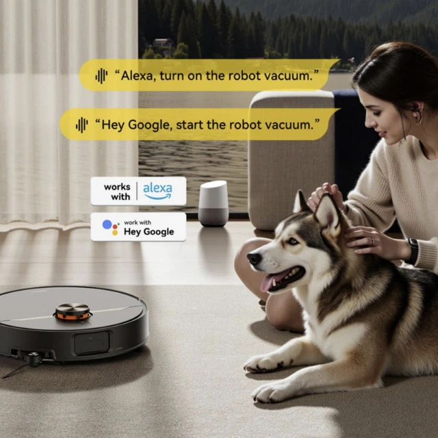 Підтримка голосових асистентів дозволяє запускати прибирання навіть без телефона. Один голосовий запит — і робот одразу виконує команду чи запускає збережений сценарій. Інтеграція з Alexa та Google Home дає змогу створювати сценарії «перед виходом з дому» або «після вечері», коли прибирання запускається автоматично.