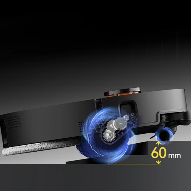 Нерівності між паркетними дошками чи високий поріг? Робот не застрягне і продовжить маршрут самостійно. Колісна база обладнана адаптивним механізмом, який підлаштовується під зміну висоти поверхні. Робот сам визначає тип покриття та автоматично підіймає колеса, щоб подолати поріг або іншу нерівність, не зупинившись. Інтелектуальні механічні колеса з підйомом до 60 мм дозволяють пристрою легко долати значні перепади висоти — наприклад, переходи між кімнатами.