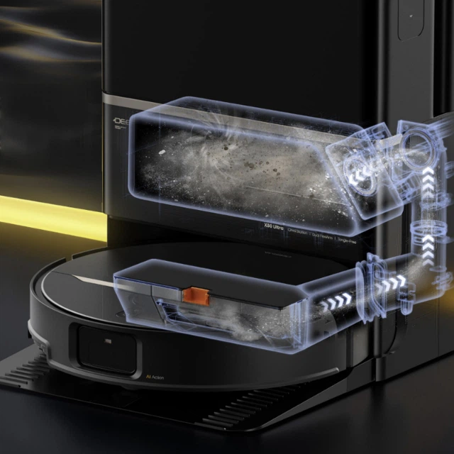 Усередині робота розміщений безщітковий мотор нового покоління, який відповідає за стабільне всмоктування. X80 Ultra справлятися з важким сміттям, дрібним пилом і волоссям. Потужність всмоктування 23 000 Па — рівень, який дає змогу глибоко витягувати пил із ворсу килимів, витягувати піщинки з щілин і ретельно прибирати шерсть тварин. Безщітковий двигун працює тихо й ефективно, зберігаючи стабільну тягу.