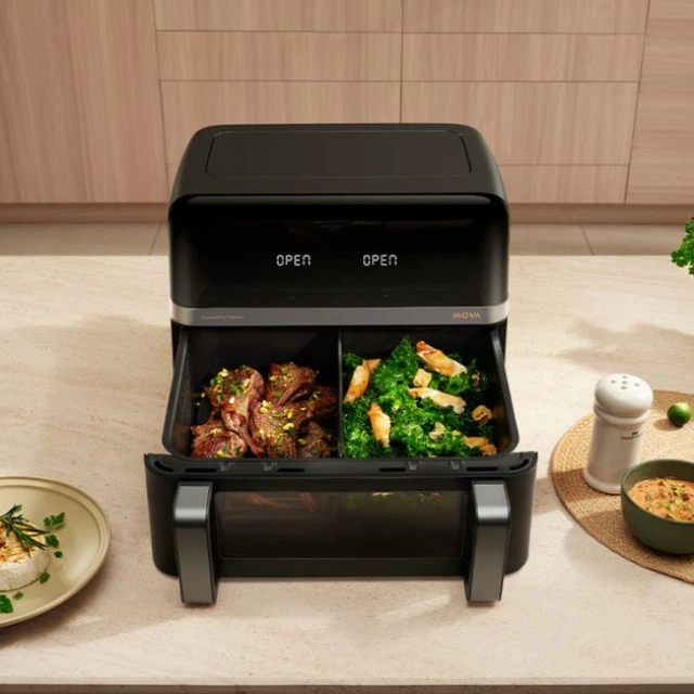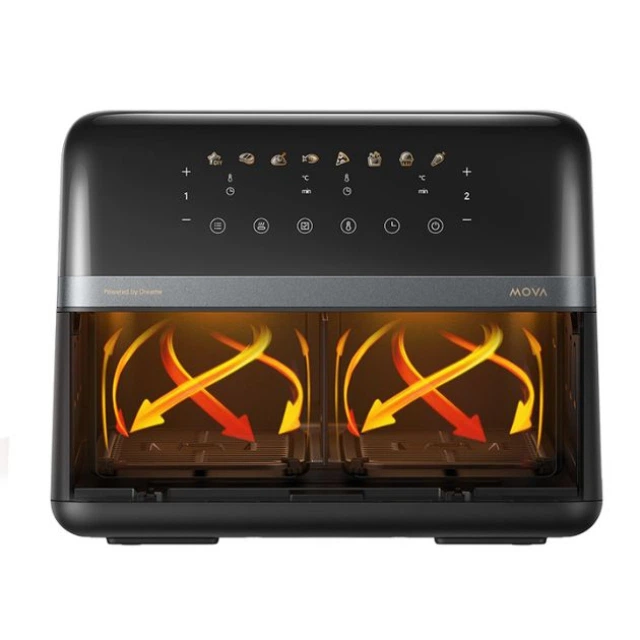 Сучасна та високоефективна мультипіч MOVA FD20 Pro створена спеціально для приготування найкращих страв. За допомогою високої потужності роботи 2700Вт та температури нагріву до 230 градусів за Цельсієм робить Ваші страви ніжними та соковитими, а з технологією циркуляції гарячого повітря та унікальної конструкції розділеної ємності для приготування по 4.5 літри дозволяє нагодувати цілу родину смачно та швидко.