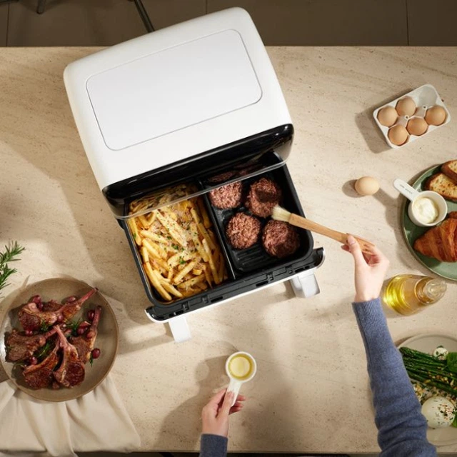 Готуйте дві страви одночасно за допомогою розділеної ємності для готування по 4.5 літра, що дозволяє готувати 2 різні страви одночасно, щоб урізноманітнити Ваш стіл.