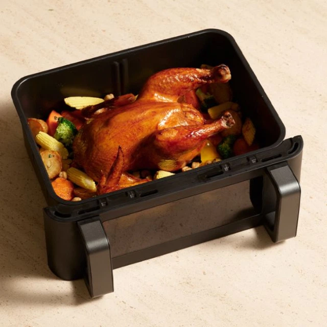 Готуйте інгредієнти в повному обсязі так само, як у традиційній духовці завдяки цільній ємності для приготування об'ємом 9л, ідеально підходить для сімейних обідів, оскільки місткість дозволяє легко розмістити 6 і більше порцій.