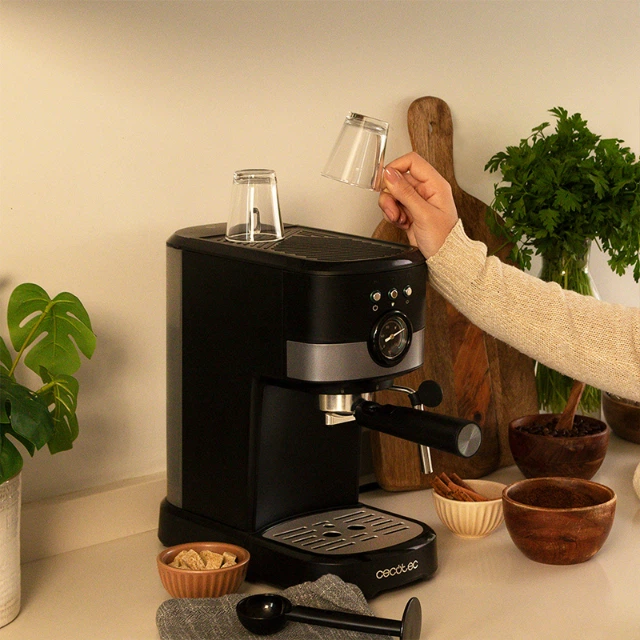 Кавомашина CECOTEC Power Espresso 20 легко приготує еспресо або будь-яку іншу каву завдяки високій потужності 1100 Вт і тиску насоса 20 бар для досягнення найкращого аромату кави.