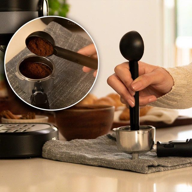 Приготуйте найкращу каву завдяки ложці з притискним пристроєм, що дозволяє максимально ефективно використовувати кожен грам кави для приготування найкращих напоїв.