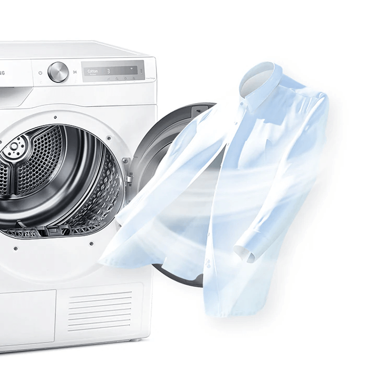Зберігайте висушений одяг у бездоганному стані без прасування праскою. Просто виберіть режим Одяг без складок і після завершення циклу сушіння барабан періодично обертатиметься без нагрівання протягом 180 хвилин. Одяг не розміщується в одному положенні за високої температури довгий час, тому на тканині не утворюються складки.