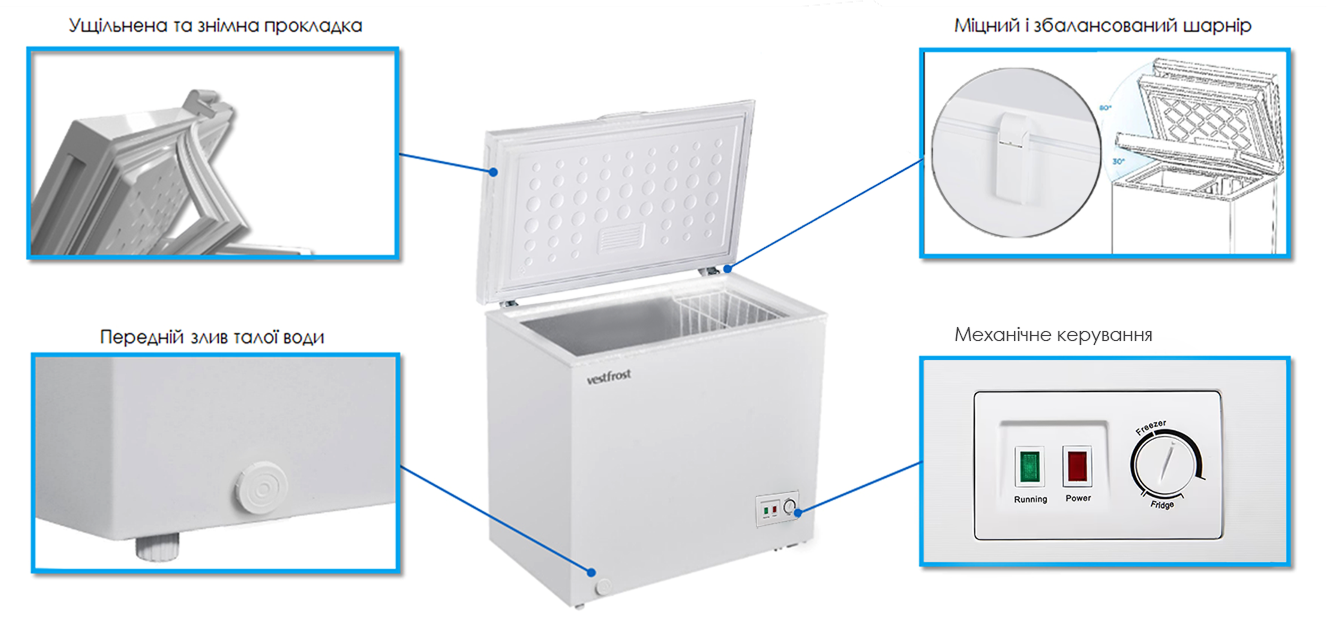 Морозильна скриня також оснащена
