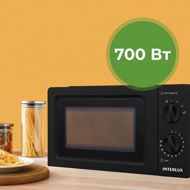 З мікрохвильовою потужністю 700 Вт та загальною споживаною потужністю 1100 Вт, наша піч гарантує швидке та якісне приготування їжі.