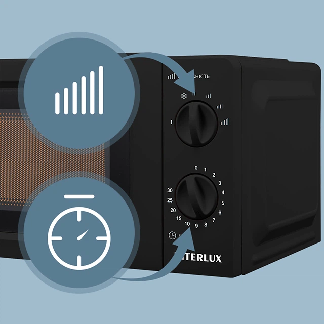 Механічне керування, 6 рівнів потужності та таймер зі звуковим сигналом забезпечують комфортне приготування їжі.
